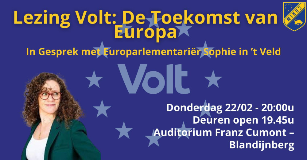 Kom op 22 februari naar Auditorium 2 Franz Cumont en treed in dialoog met MEP Sophie in 't Veld en Volt rond stellingen over interessante Europese vraagstukken. Laat je inspireren door Sophie's inzichten over de staat van Europa en deel je eigen meningen over Europese thema’s. Aan de hand van handige stellingen wordt het gesprek op gang getrokken.