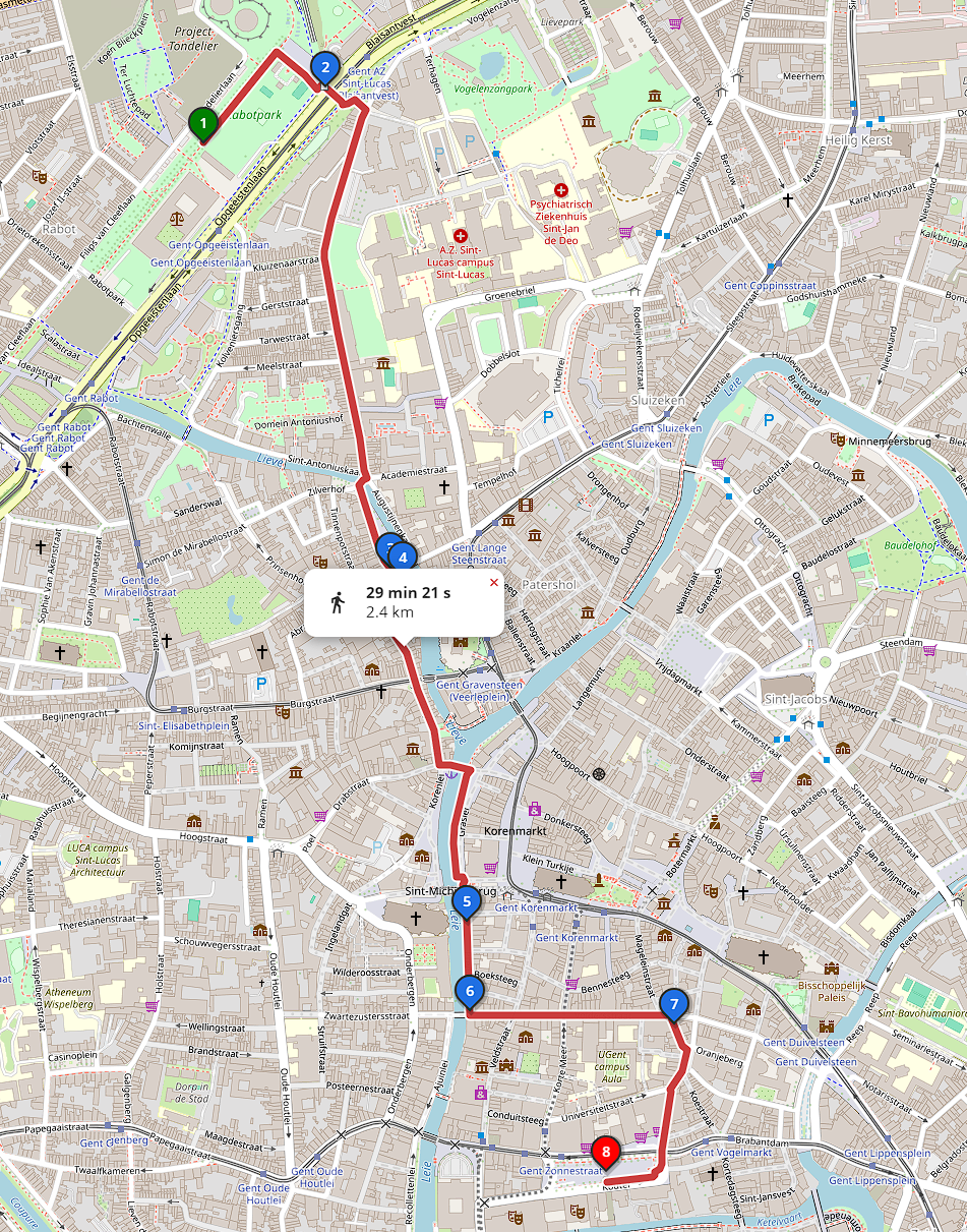De mars begint aan het Rabotpark en eindigt aan de Kouter. Zie het kaartje hieronder voor de volledige route.